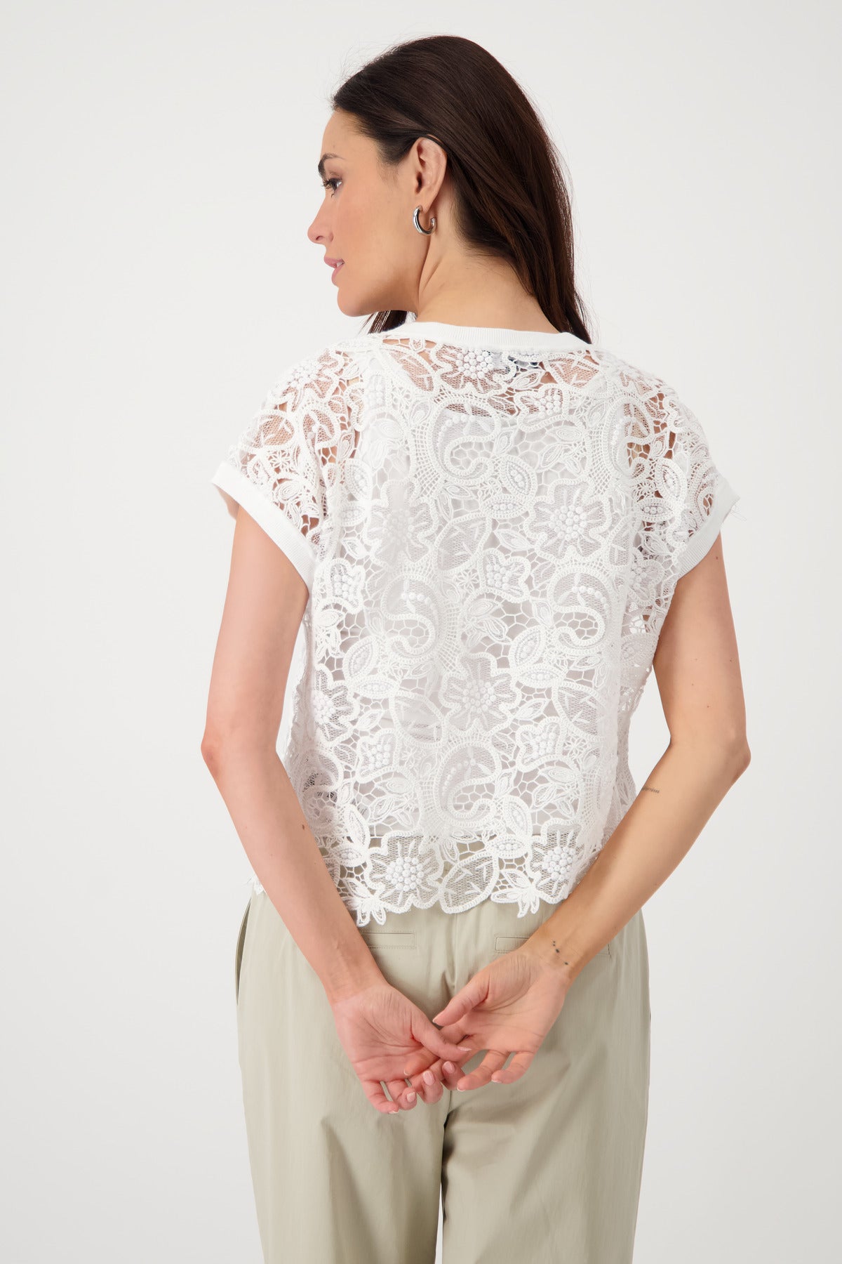 Made from a high-quality cotton blend, this shirt combines delicate lace with a floral pattern for an elegant look. Dress this up or down. Very Elegant.