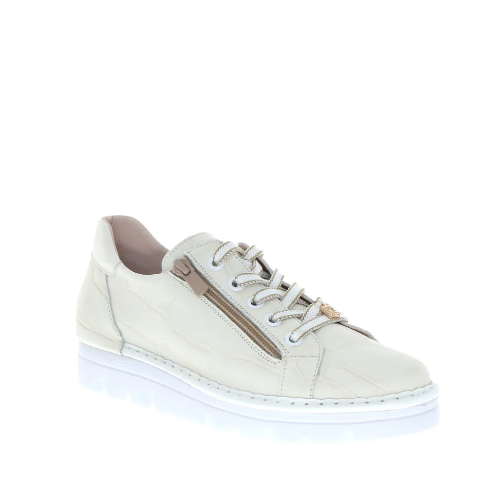This is a fantastic sneaker by Jose Saenz for NEO Shoes.  So comfortable and easy to put on and take off because of side sip (no more tying shoe laces)  Shoe has a fashion, thick white sole, edgy  highlights and an extreme  comfort inner foot bed.  This shoe TAKES ORTHOTICS. You could walk all day in this proven best seller. Perfect to wear with jeans, skirt or dress.